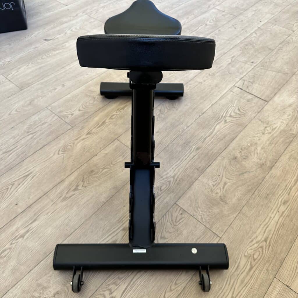 This bench comes with built-in rear transport wheels and an ergonomic and comfortable handle below the seat. These features allow you to move it around your fitness space without effort. The convenient positioning of the handle makes it perfectly convenient to move around without getting in the way of any exercises.