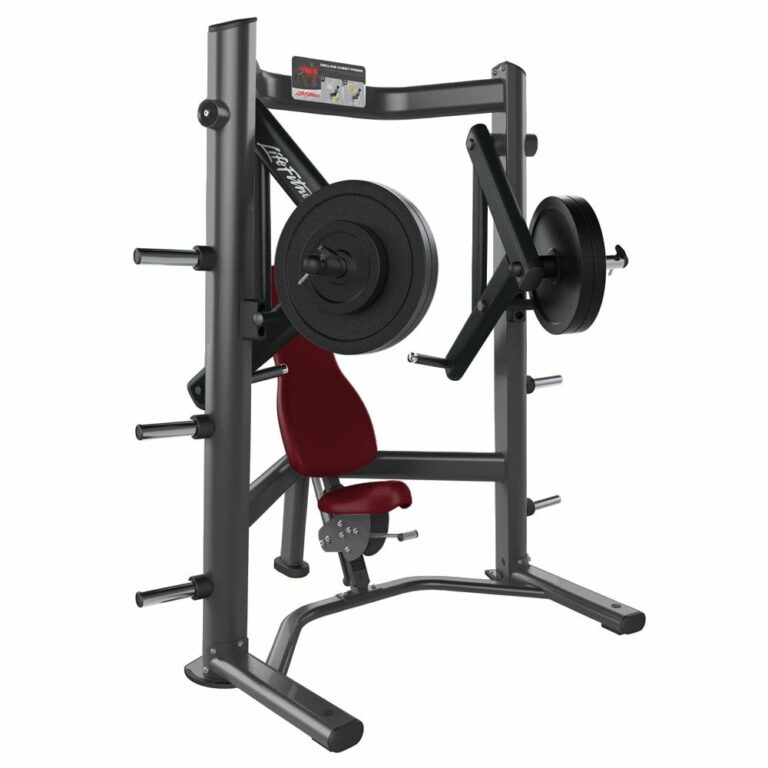The range of Life Fitness strength machines includes plate-loaded machines, benches, and racks.