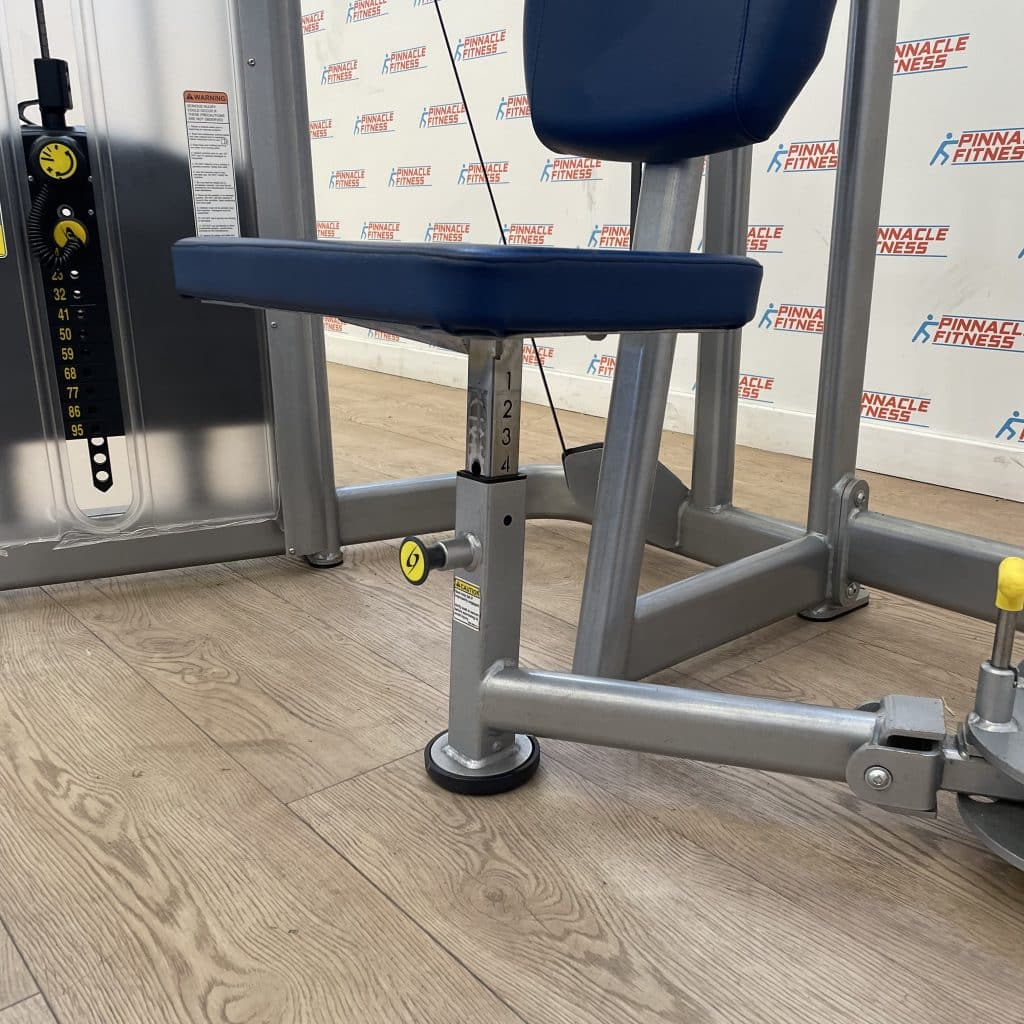 - Gas Assist Seat: Our intuitive seat base adjustment design uses gas spring assist to allow adjustments to the seat height without requiring the user to leave the machine. Both the seat base and seat backs have position indicators to enable the user to consistently duplicate a position on the machine.