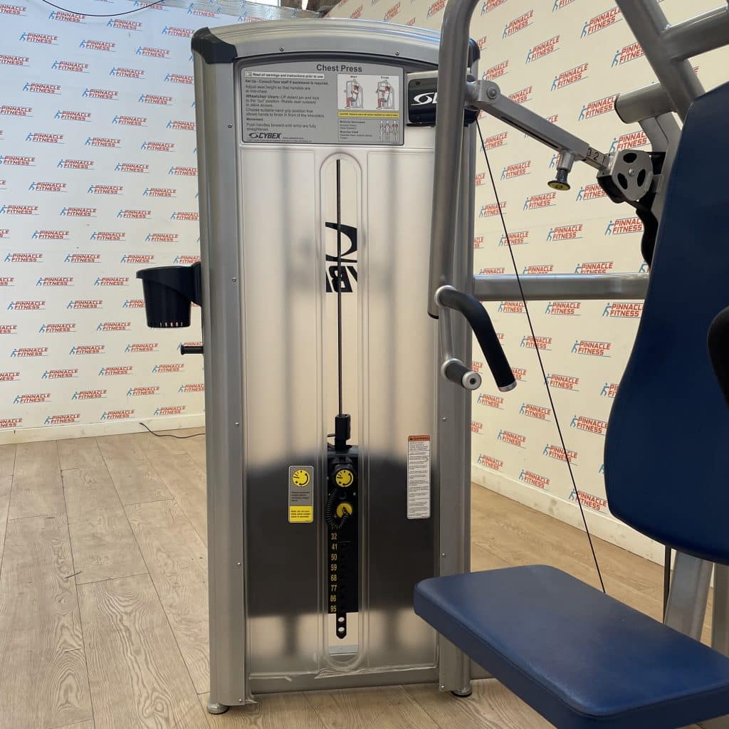 Form and performance — can one exist without the other? It shouldn’t. The CYBEX VR3 resistance strength line exercises the theory that form and performance belong together. VR3 is a collection of machines that combine striking appearance, excellent performance, genuine comfort and accessibility — without sacrificing the goal of functionality. If you want form and performance, the VR3 line delivers both. Dependent Movement – The VR3 dependent motion offers a feeling of security to new and average users. By having both arms working together in a fixed plane, the chest press exercise feels better controlled for a comfortable and secure training movement. The converging path of motion of VR3 Chest Press mirrors the natural way the human arms move… forward and to the center… not straight ahead. VR3 Chest Press by Cybex provides a more complete range of motion with constant torque at the shoulder. This is the commercial strength line that competes with the best others have to offer. A group of machines that combines striking appearance with rugged durability, VR3 has been engineered to take the tough punishment a heavy duty commercial environment requires. And it works for the highly supervised gyms as well as the self-serve facility. The unique Cybex design assures that the preset range of motion is never exceeded and the fit of the machine to user is perfect. Unlike many other chest press machines, Cybex VR3 does not use a foot kick plate to help the arms get into the proper position to begin exercise. With VR3, the seat back adjusts to the comfortable start position which ensures safety is not compromised in the event muscles weaken and exercise has to end before the feet can get back to the footplate. Adjusting the back pad means that tall and short users will fit perfectly as compared to machines that adjust the arm – forcing taller users into a narrow position and shorter users into wider positions than ideal.