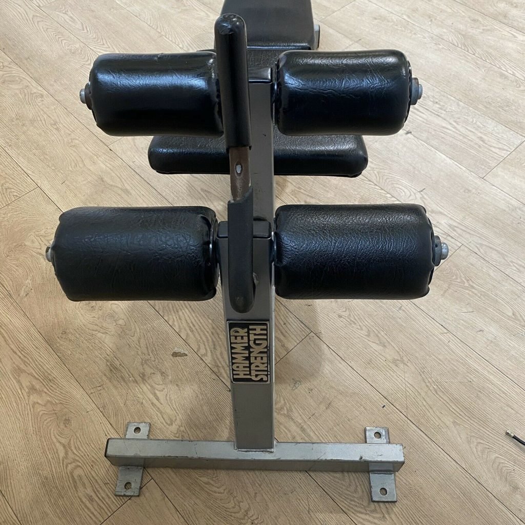 Product Description :   The Decline/Abdominal Bench offers two workout options in one piece of equipment with the same high-grade durability and quality that comes with Hammer Strength benches and racks.   Condition is well used as per images   Specifications: Brand: Hammer Strength Weight: 46.00kg Dimensions: 161 cm x 61 cm x 87 cm) Condition Used Max user weight (kg) 190