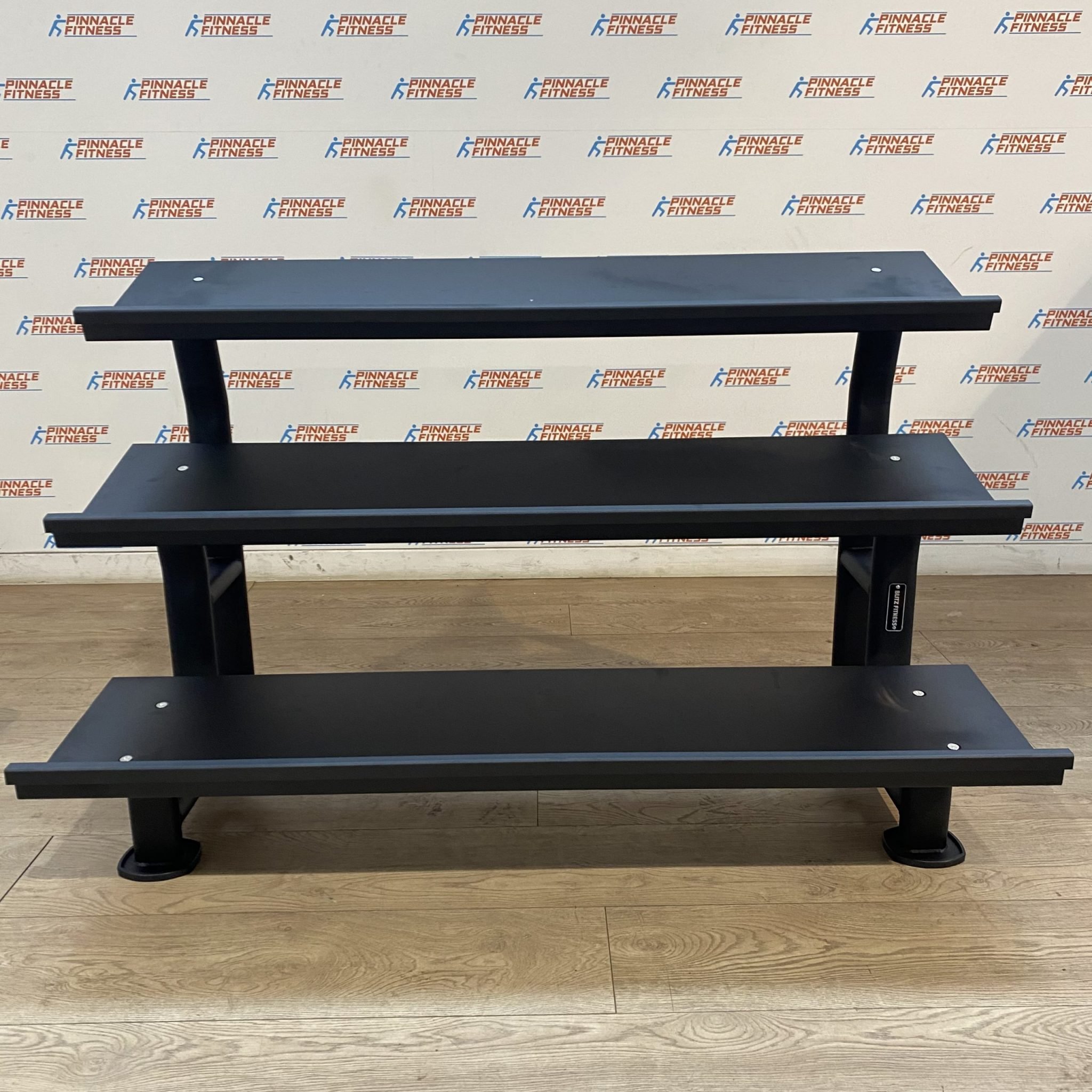 Add to the weight training section of your fitness centre or home gym with the Blitz Fitness 3-tier dumbbell rack holds up to 12 pairs of Hex Dumbbells in 2.5kg increments from 2.5kg to 30kg.