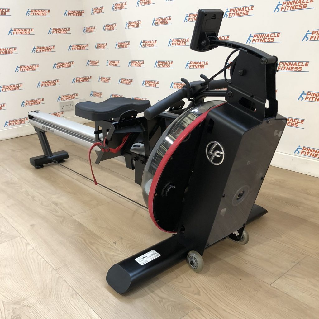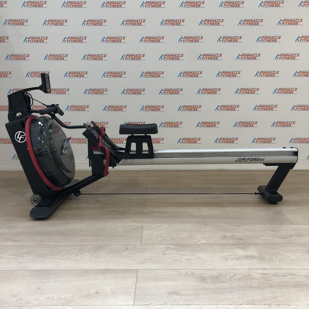 The full commercial Life Fitness Row GX Rowing Machine merges durability, comfort and quality design to deliver an exceptionally high performance rowing experience. Designed with fluid technology resistance, the Row GX uses water to power the resistance. This offers incredibly natural motion, simulating the sound and feel of a real rowing experience, whilst engaging the whole body. With 16 resistance levels, it can challenge very user, from the newbie to the seasoned campaigner. The simple to use console shows all your key workout stats including time, distance and strokes per minute and the ergonomic handle guarantees reduced strain on the arms and wrists. A stand out performer on both the gym floor and in the home, it boasts attractive, stylish design as well as a conveniently small footprint of under 77″ in length. Taking up less space, it’s great for smaller spaces at home, or in a busy gym where you may want multiple rowers for engaging group sessions. Plus, complete with vertical storage and transport wheels, it’s easy to move around your facility or home and keep out of the way when not in use.