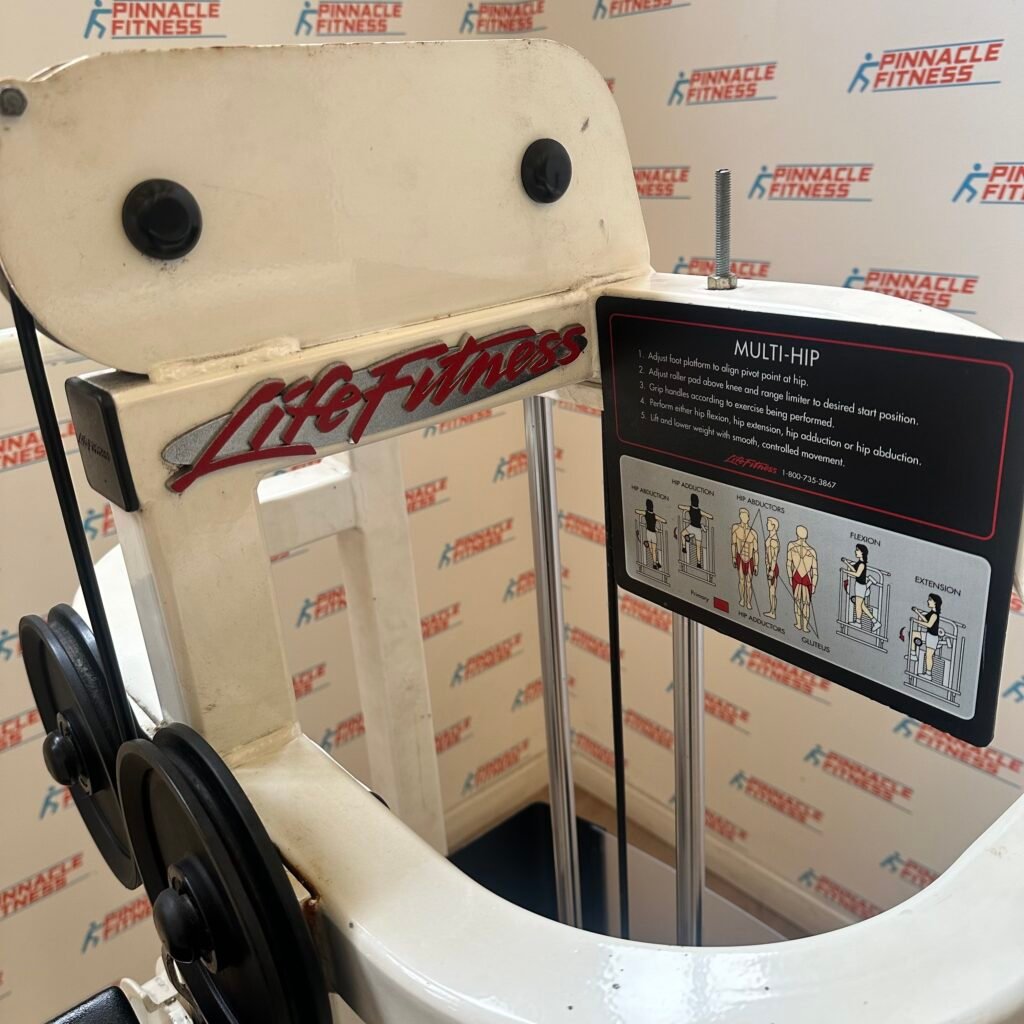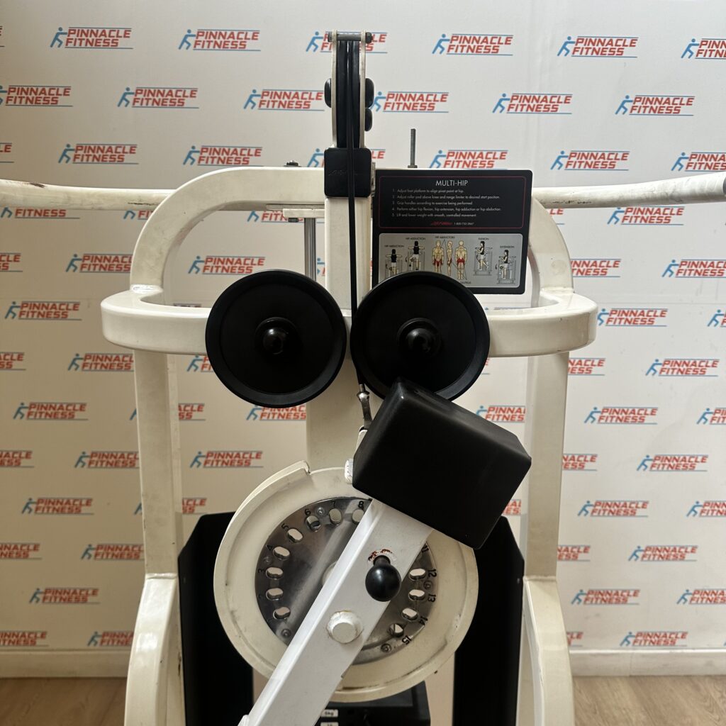Life Fitness pro / pro1 Multi Hip. It is a machine designed to work the hip and glute muscles of the lower body. Covered pulleys to guarantee the safety of the users.Cable Adjustment, Rubber bumpers suspended under each stack, Adjustable seats, Dual-position handles for increased stability and safety Roller pad has increased life over fixed pad because wear is distributed around entire pad rather than focused on one spot. This item is in used condition but in good…