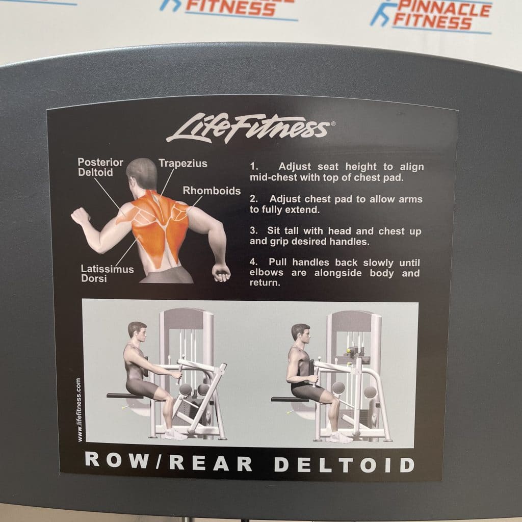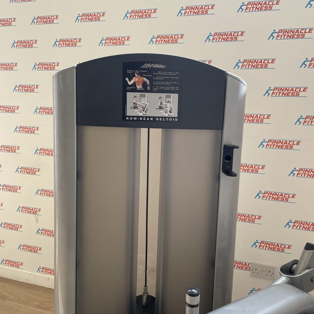 Description The Life Fitness Signature Series Row Rear Delt is a great machine for targeting your lats and rear deltoids. This machine has multiple grips to alternate exercises between lats and rear delts. It is also designed with an adjustable chest pad to accommodate users of all sizes. This row/rear delt machine is one of a series of great Life Fitness Signature Selectorized units. FEATURES Diverging movement pattern follows the natural path of movement for a superior feel…
