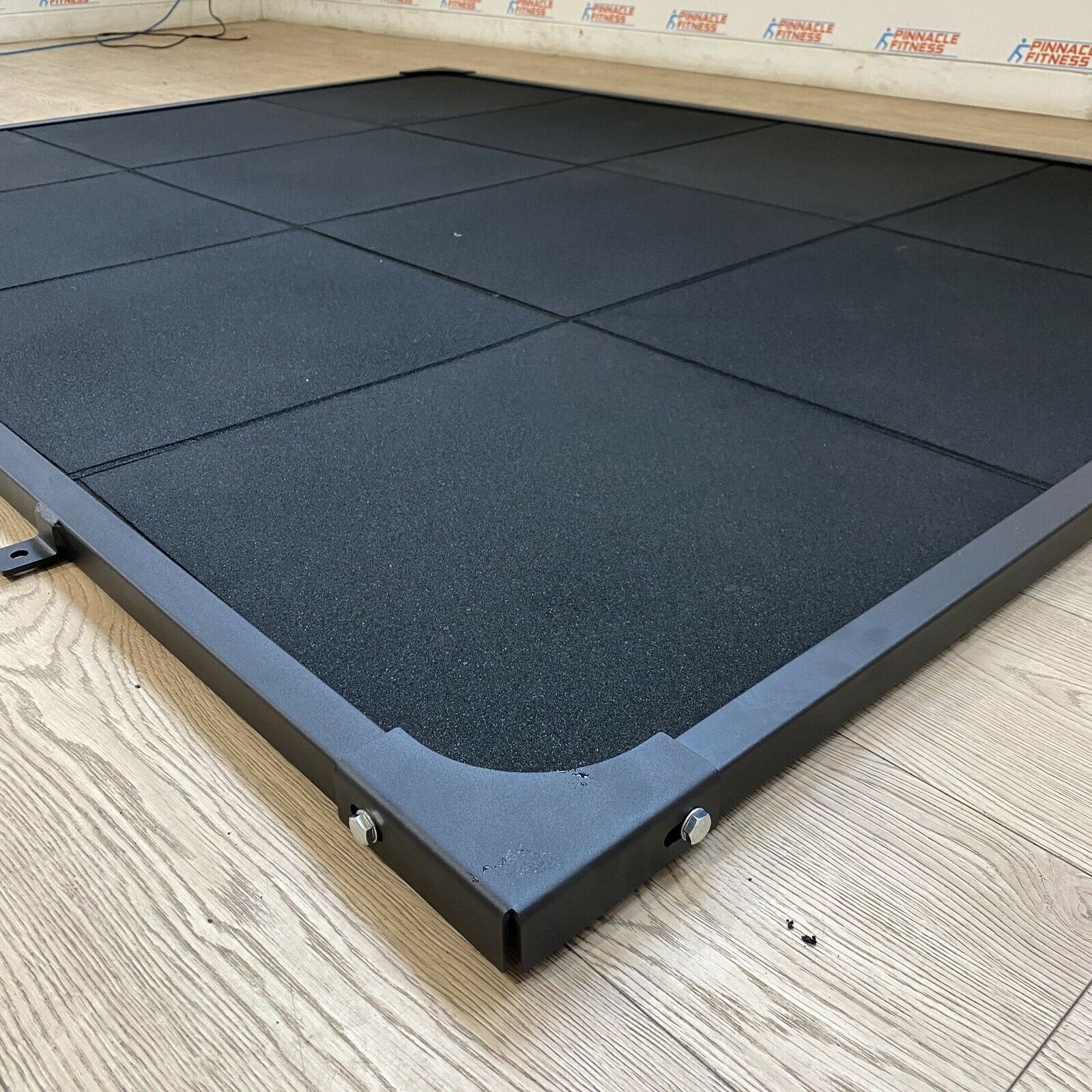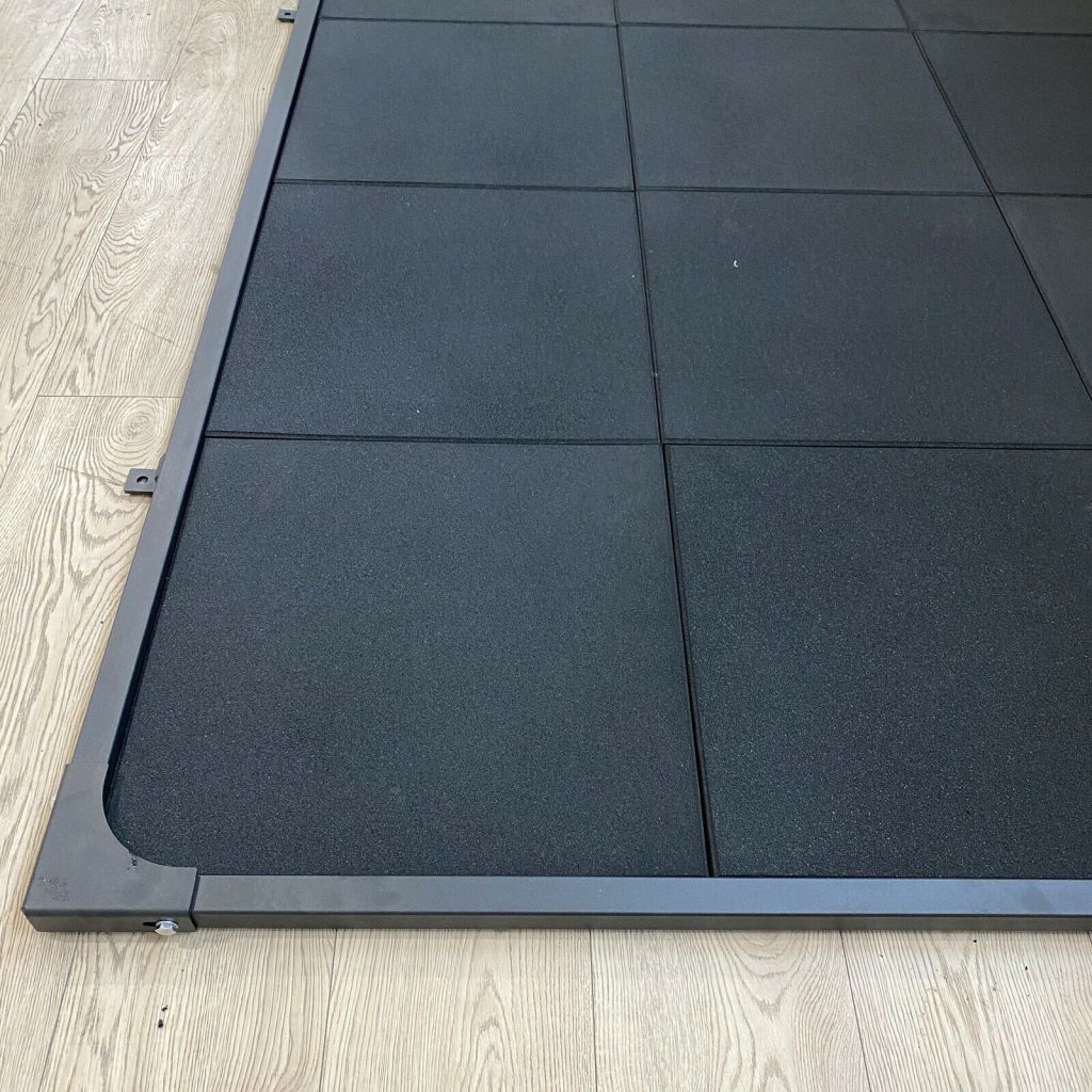 The Blitz Fitness Olympic Lifting Platform provides a dedicated space for Olympic lifting. The 180cm x 240cm platform has a 1.5cm x 1.5cm x 2mm steel frame that bolts together with gusseted corners.The rubber surface is shock absorbing and will cause less wear and tear on your equipment. It also dampens the sound when dropping a fully loaded barbell. You can use either rubber tiles or a combination of rubber and wood. If the platform is being used for band work, it must be bolted down to the floor Size: 180cm*240cm steel tube size: 1.5cm x 1.5cm x 2mm Mat: 60cm x 60cm x 3cm x 12pcs