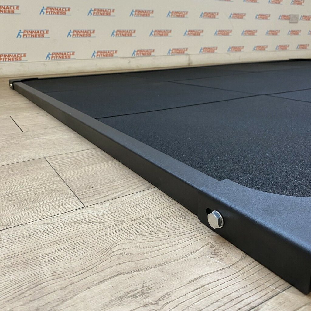 BLITZ FITNESS OLYMPIC LIFTING PLATFORM The Blitz Fitness Olympic Lifting Platform provides a dedicated space for Olympic lifting. The 180cm x 240cm platform has a 1.5cm x 1.5cm x 2mm steel frame that bolts together with gusseted corners.The rubber surface is shock absorbing and will cause less wear and tear on your equipment. It also dampens the sound when dropping a fully loaded barbell. You can use either rubber tiles or a combination of rubber and wood. If…
