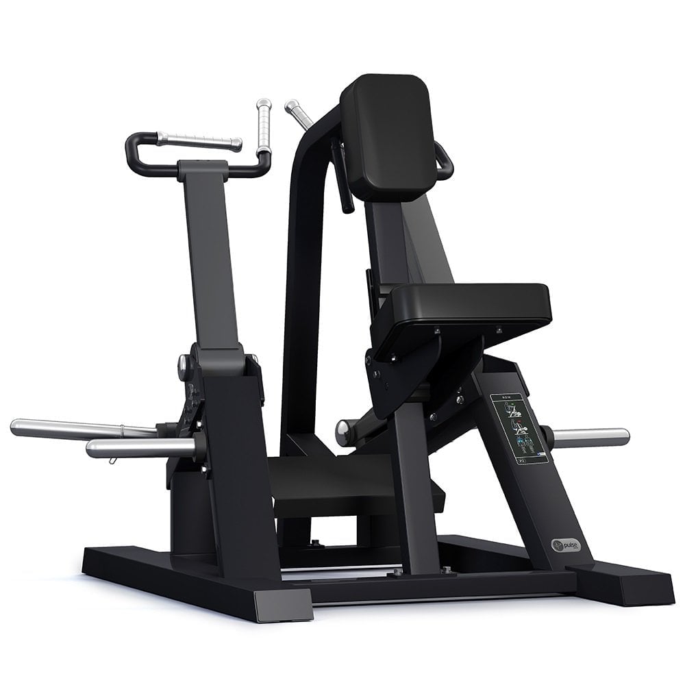 The Pulse Fitness Club Line Plate Loaded Seated Row has horizontal and vertical hand grips which provide users with different training emphasis and variety. Its stabilising central handle helps when performing unilateral rows whilst the foot plate provides lower body stability. The angled seat and chest pad help to achieve proper body positioning throughout workouts.