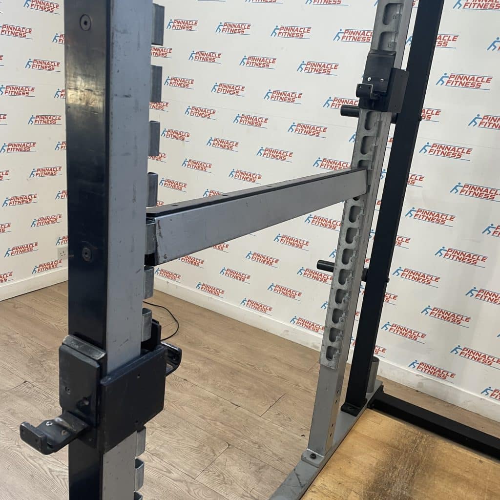 Both the front and rear uprights have Stainless steel hook-plates, this utilizes a safety slot design to prevent unintentional disengagement of the bar holder. Both the rear upright and front uprights are adjustable to 19 positions on 7.6cm (3”) centre increments accommodating a wide range of heights